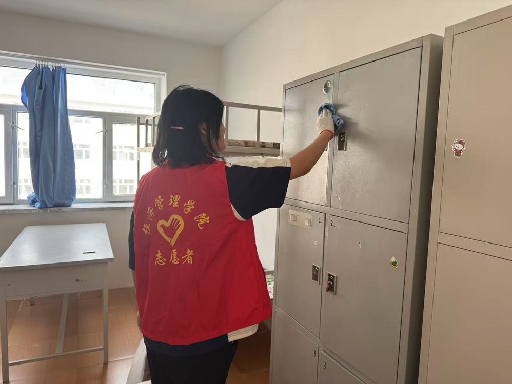 活动前期,学院统筹规划,根据新生寝室分布制定清洁方案,将志愿者合理分组并明确清扫标准与安全规范。活动中,志愿者们携带清洁工具,以小组为单位深入新生公寓楼,严格按照“清—扫—消—查”四步法开展工作。从擦拭门窗桌椅到清理卫生死角,从规整公共区域到检查设施设备,每个环节都体现着细致与用心,各区域负责人开展“地毯式”复查,逐间确认是否清理到位、设施报修是否登记完整。经过志愿者们的辛勤劳动,90余间新生寝室窗明几净,焕然一新,洋溢着家的温馨。