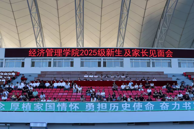 报到日下午,学院在南体育场隆重举行2025级新生及家长见面会,学院领导班子成员、各系主任、新生班主任、全体辅导员、新生及家长共计1000余人参加见面会。院长的致辞、教师代表的发言,饱含对新生的深切期许与美好祝福;在校生代表的经验分享,为新生开启大学生活注入信心;新生代表的青春宣言,尽显赤忱朝气;学院领导班子和教师代表为新生佩戴校徽,徽章轻落胸前,就此成为新生与学校紧密相连的第一份印记。见面会在全体新生铿锵有力的宣誓声中落下帷幕。希望全体2025级新同学在磨砺中稳步前行,以积极向上的姿态迎接每一次挑战,持续突破自我、收获成长。