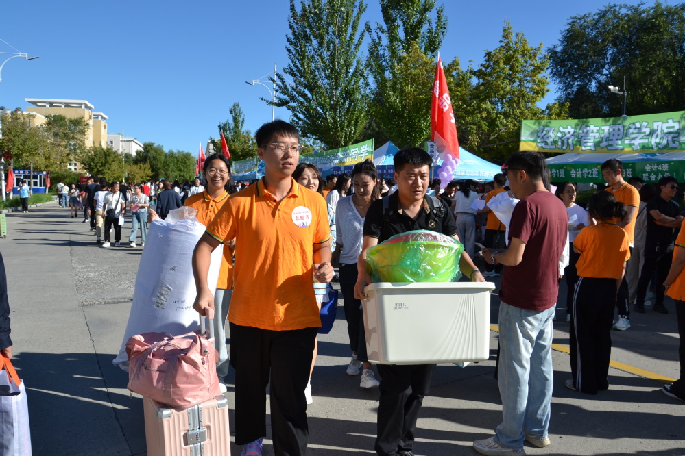 “心连新,手拉手”专属服务同步上线,学生志愿者与党员志愿者身着统一服装,以清晰标识主动亮明身份,化身新生的“校园引路人”。他们或主动接过沉重行李、或细致讲解报到流程、或耐心解答学业生活疑问,每一个微笑、每一次帮扶,都让新生与家长切实感受到学院温馨友好、团结互助的浓厚氛围。